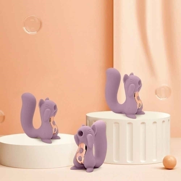 コンパクトサイズの可愛らしいリス型の吸引バイブ。吸引パワーは10段階あるので、優しく吸われるような刺激や強く吸われるような刺激まで幅広くお楽しみいただけます。シッポ部分にはパワフルなモーターが内蔵されているので挿入バイブとしても使えます。吸引バイブを楽しみたい時、挿入バイブを楽しみたい時、その時の気分や気持ちで使い分けできるバイブです。●カラー:ライラック