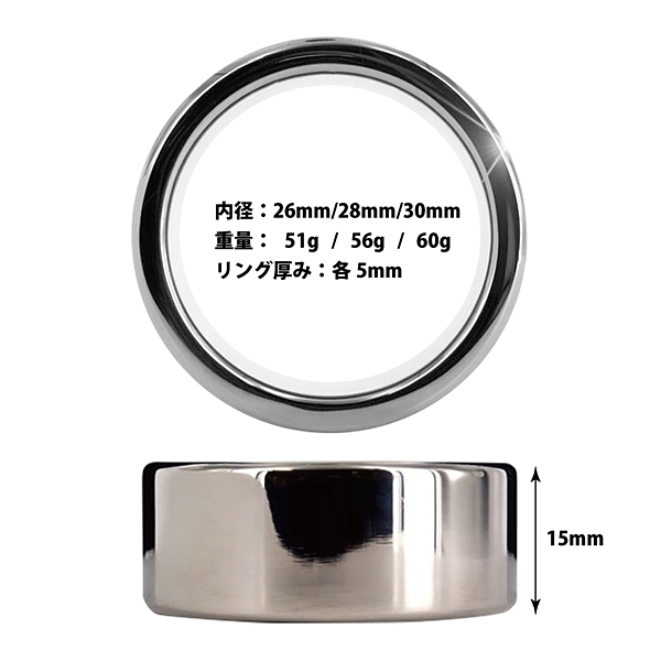 男の機能をアップさせスタイリッシュに拘束感を味わえるメタルコックリングシリーズ滑らかな形状で美しい鏡面加工とメタルならではの硬度と加重で貴方の怒張をよりクールに!内径の異なる3サイズ展開で発売中!●内径30mm