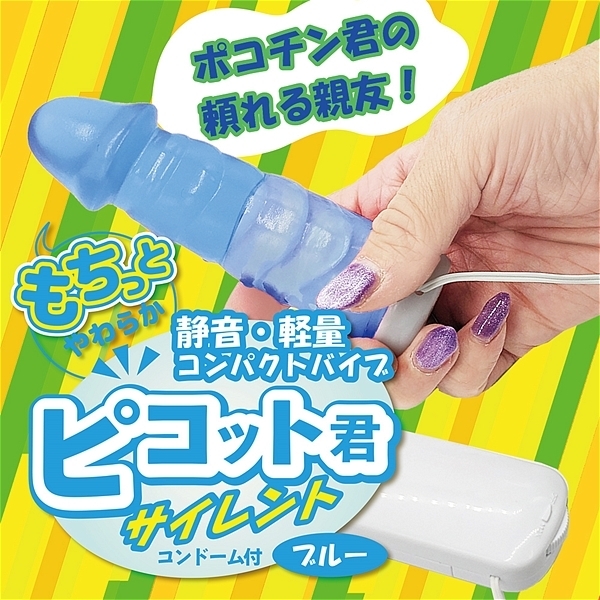 もちっと柔らか素材がピタっと吸着!あのポコチン君の頼れる親友、その名も ちびっこバイブ「ピコット君」。小さいながらもハイパワーでプルブル振動!ダイヤル式無段階調節でお好きな振動で遊べます。カリ高で、このもちもち弾力素材の柔らかさがたまらない!アルカリ電池&バイブカバー用のコンドーム同梱で即使用可能。バイブデビューにもピッタリな可愛いサイズ。●カラー:ブルー