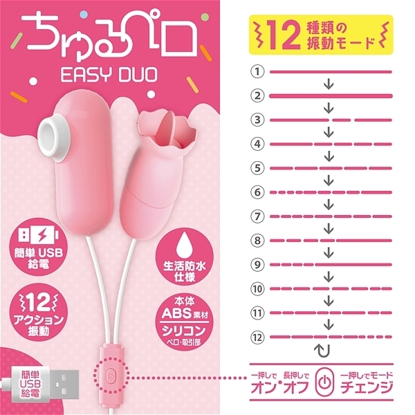 もう充電も電池もいらない!USBに接続すればすぐに使えるちゅるペロEASYDUO!お手持ちのUSBアダプターやモバイルバッテリー等で簡単に給電が出来ます。吸引部とぺろぺろ部はシリコンで柔らかく本体はABSになっています。手軽に安価に吸引とぺろぺろを楽しんでください