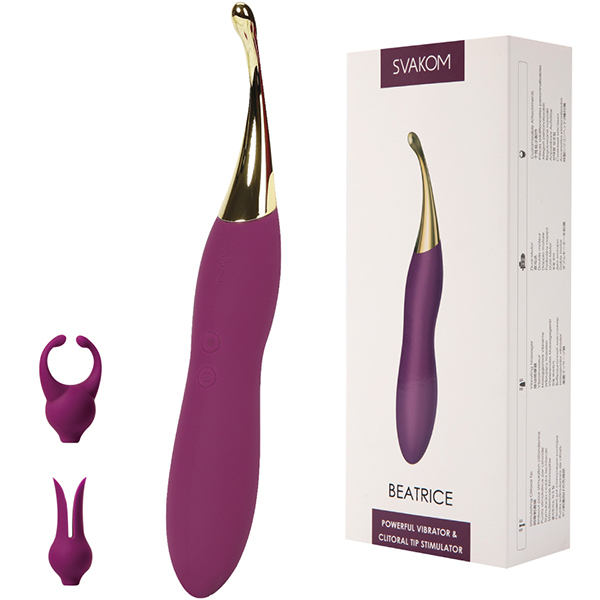 BEATRICE(ベアトリス)は、極細ヘッドでクリトリスやあらゆる箇所をピンポイントに刺激する極細バイブです。ヘッド持ち手の部分は挿入も可能なスリムバイブで、奥(ポルチオ)やGスポットへの刺激もOK!2種類の専用アタッチメント付きで、ピンポイント刺激に変化をもたらす前戯に最適なバイブです。挿入も可能な持ち手部分は、先端が細めの設計でスムーズな挿入感とポルチオを刺激。※こちらの商品は受注発注商品の為、ご注文から発送までに3、4営業日掛かる場合が御座います。