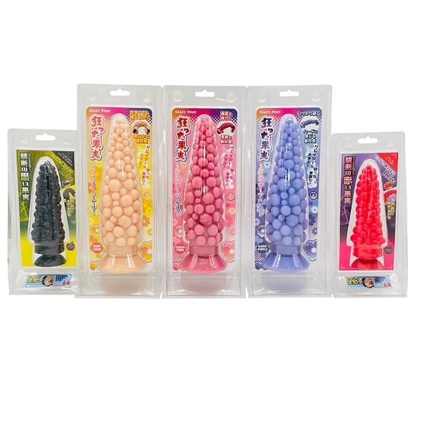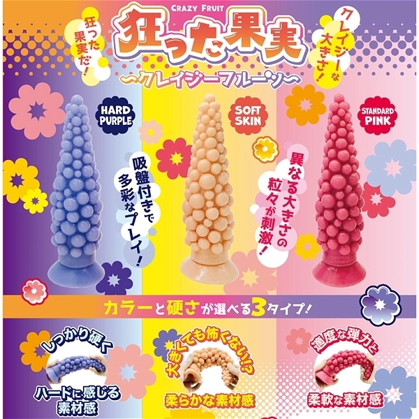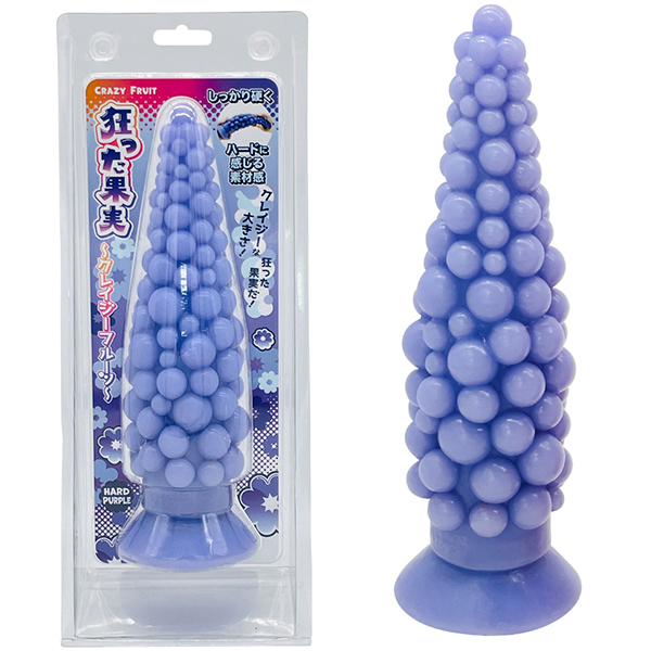 クレイジーな大きさ!狂った果実だ!『狂った果実 クレイジーフルーツ』の登場です。異なる大きさの粒々が刺激!全長27cmの巨大ディルド。先端は小さく、段々と広がる円錐形状に大きさの異なる粒々がランダムに配置!直径0.6〜2.4cmの半球を多数配置●カラーと硬さが選べる3タイプ!<ハードパープル>パープルのハードタイプ。しっかり硬くハードに感じる素材感!