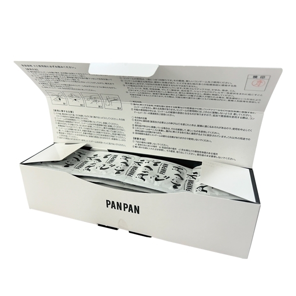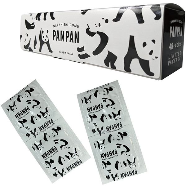 52個入りで、ちょうど良いサイズ感を提供します♪12個入りでは足りないし、144個入りでは多すぎると感じている方にぴったり!この製品は、最薄部0.03oの薄型デザインで、快適な使用感を実現しています。胴細形状による脱落・逆流防止機能と、両面ゼリー加工が施されており、安全にご利用いただけます♪見た目は普通の商品パッケージのようで、コンドームとは分かりにくいデザインが特徴!可愛いパンダのイラストがプリントされており、プレゼントやサプライズにも最適です♪製造は、業務用コンドームでNo.1の売り上げを誇る中西ゴム製。安心のJIS適合品で日本製です!