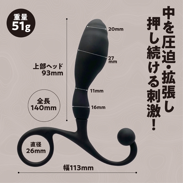 尻にいいアイカスにブラックバックシリーズが新登場!プレッシャーはその名の通りシリーズ最大径の27mmと拡張も視野に入れた初中級者モデル。シリコン部の全長140mm上部ヘッドは93mmと中を圧迫できます。会陰ボールも搭載しておりドライオーガズムを体験する第一歩のグッズとして最適です。