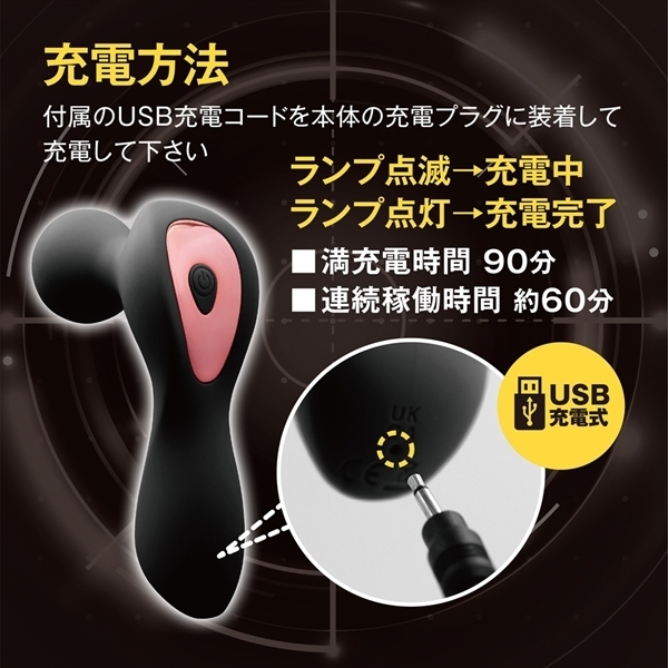 仕様:パッケージ:16.4×8.8×4.8cm 本体サイズ:11.5×6.6×3.7cm 【振動機能 USB充電式】 USB充電コード付属