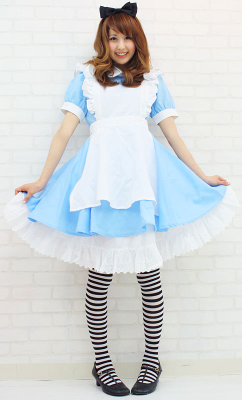 みんなの大好きな「不思議の国のアリス」!アリス風メイド服が登場です!たっぷりのフリル使いで可愛らしさ満点!涼しげなサックスカラーに、ホワイトのエプロンは清潔感が溢れ出します。童話の世界から飛び出した夢のようなコスチュームに目が離せません!※水洗い不可、塩素系漂白剤による漂白不可、アイロンは中温で当て布使用、ドライクリーニング可、色落ちの可能性があります。※靴下は別売※こちらの商品は在庫の状況によりお届けまでに4日〜7日程度かかる場合がございます。