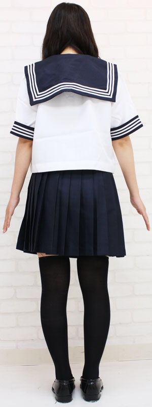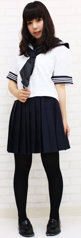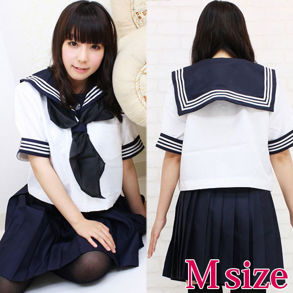 大きめスカーフが特徴の制服コスプレ!半袖の夏服バージョンです。スタンダードなデザインの白×紺の上下に、スカーフもセット!一式揃ったセーラー服のコスプレ衣装です。襟と袖口には三本ライン、胸元には刺繍入り。※水洗い不可、塩素系漂白剤による漂白不可、アイロンは中温で当て布使用、ドライクリーニング可、色落ちの可能性があります。※こちらの商品は在庫の状況によりお届けまでに4日〜7日程度かかる場合がございます。
