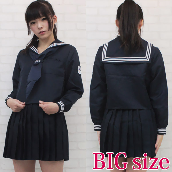 紺と白の清純セーラー!一度は着てみたかった憧れの制服コスチューム。シンプルなデザインで着こなしやすい!本格的な刺繍で施された、スカーフ留めと袖がポイント!定番の3本ラインが可愛い、制服コスプレ衣装です。※こちらの商品は在庫の状況によりお届けまでに4日〜7日程度かかる場合がございます。