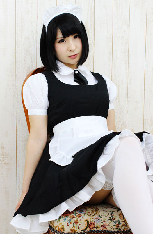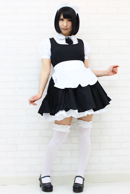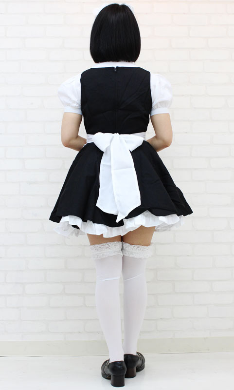 仕様:BIGサイズ:B〜104cm・W〜86cm 丈:ワンピース83cm(裾フリル含む)・ブラウス63cm(袖丈25cm、袖幅35cm、肩幅47cm、首周り43cm) セット内容:ブラウス、タイ(ナップボタンにて取り外し可能)、ワンピース(背中ファスナー)、エプロン、カチューシャ