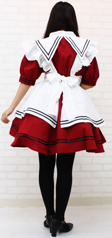 仕様:Mサイズ:B78〜86cm・W62〜94cm 丈:ワンピース78cm(肩幅35cm、袖丈26cm、袖口29cm)・エプロン68cm セット内容:ワンピース(ウエストゴム入り、後ろファスナー、前飾りボタン付き・襟付き)・エプロン(前飾りボタン付き)・カチューシャ
