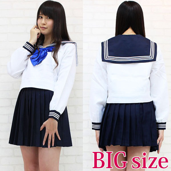 青いリボンが爽やか!春・秋仕様のキュートなセーラー服コスプレ。3本ラインが特徴の上着はサイドファスナー付き、スカートはアジャスターでサイズ調節も可能!クオリティの高さが自慢の、お嬢様系スクール制服コスプレです。※水洗い不可、塩素系漂白剤による漂白不可、 アイロンは中温で当て布使用、ドライクリーニング可、色落ちの可能性があります。※こちらの商品は在庫の状況によりお届けまでに4日〜7日程度かかる場合がございます。