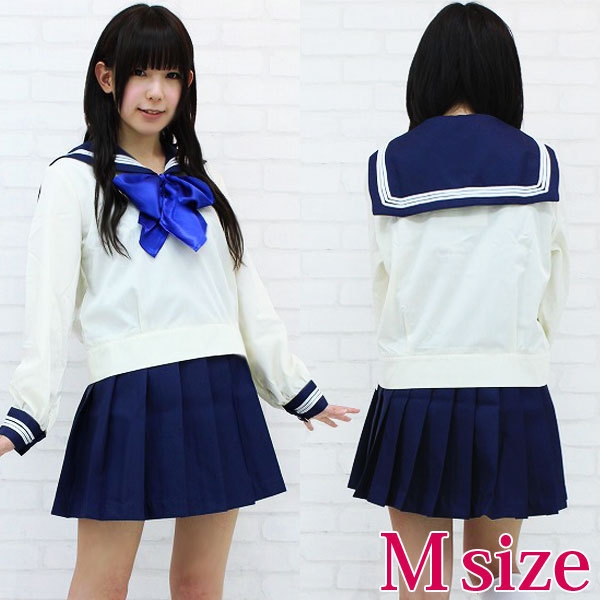 青いリボンが爽やか!キュートな長袖セーラー服コスプレ。3本ラインが特徴の上着はサイドファスナー付き、スカートはアジャスターでサイズ調節も可能!クオリティの高さが自慢の、お嬢様系スクール制服コスプレです。※水洗い不可、塩素系漂白剤による漂白不可、アイロンは中温で当て布使用、ドライクリーニング可、色落ちの可能性があります。※こちらの商品は在庫の状況によりお届けまでに4日〜7日程度かかる場合がございます。
