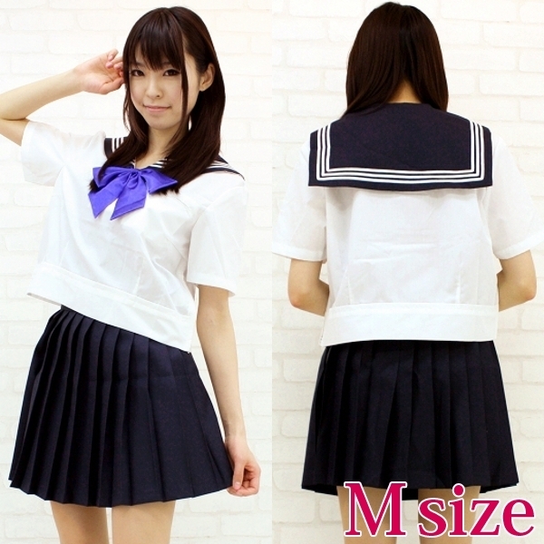 青いリボンが爽やか!キュートな半袖セーラー服コスプレ。3本ラインが特徴の上着はサイドファスナー付き、スカートはアジャスターでサイズ調節も可能!クオリティの高さが自慢の、お嬢様系スクール制服コスプレです。※水洗い不可、塩素系漂白剤による漂白不可、アイロンは中温で当て布使用、ドライクリーニング可、色落ちの可能性があります。※こちらの商品は在庫の状況によりお届けまでに4日〜7日程度かかる場合がございます。