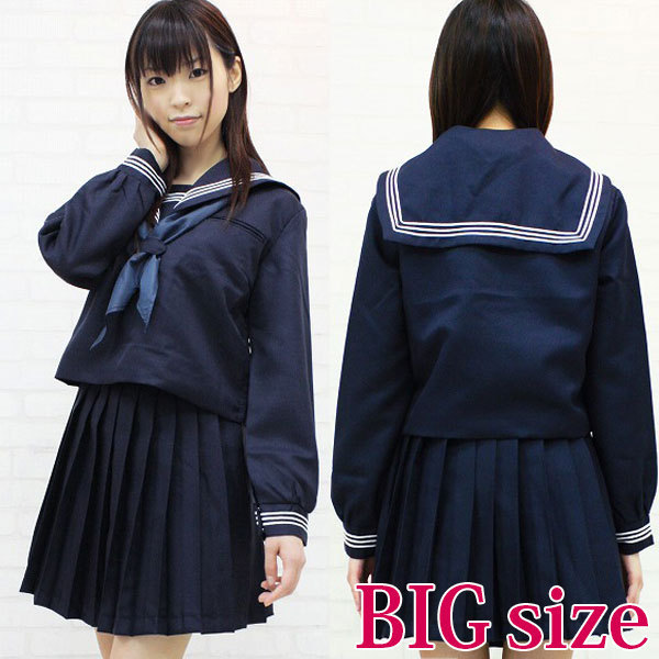 制服コスプレの定番!ネイビーカラーの長袖セーラー服。上着はサイドファスナー仕様、スカートはアジャスター付き、もちろんスカーフもセットです!しっかりとした作りで、クオリティの高いお嬢様系制服コスチュームです。※水洗い不可、塩素系漂白剤による漂白不可、アイロンは中温で当て布使用、ドライクリーニング可、色落ちの可能性があります。※こちらの商品は在庫の状況によりお届けまでに4日〜7日程度かかる場合がございます。