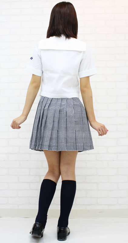 仕様:BIGサイズ:B88〜100cm・W76〜85cm 丈:上着54cm(袖丈26cm、肩幅39cm)・スカート45cm セット内容:上着(ピケ生地使用、前ボタン留め、金ボタン、左袖に校章付き)・スカート(横ファスナー、アジャスター有り、黒ギンガムチェック生地)
