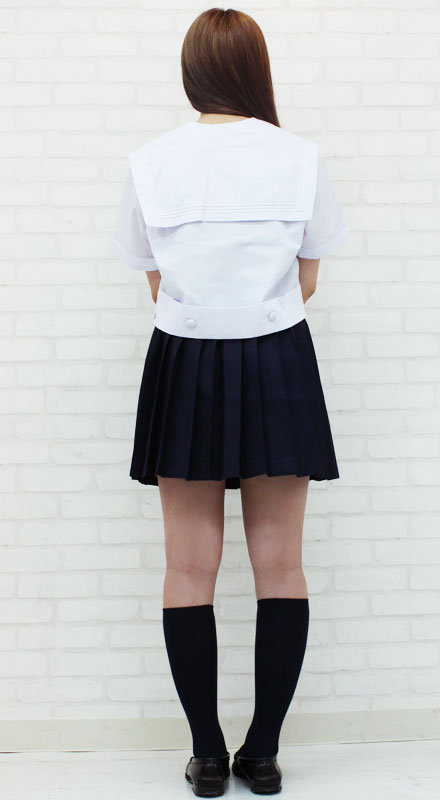 胸元にある水色の刺繍が涼やかな、白セーラー&濃紺スカートの制服コスプレセット。清涼感いっぱいの白い半袖セーラーブラウスは、サイドファスナー仕様。裾は前後に2個ずつボタンを使用した幅広なベルト風になっており、後姿も可愛く仕上げました。濃紺プリーツスカートのウエストはアジャスターで調節可能。白&濃紺のコントラストは、まさに鉄板!憧れのお嬢様になれちゃうセーラー服コスチュームです!※水洗い不可、塩素系漂白剤による漂白不可、アイロンは中温で当て布使用、ドライクリーニング可、色落ちの可能性があります。※こちらの商品は在庫の状況によりお届けまでに4日〜7日程度かかる場合がございます。