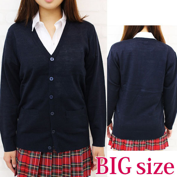 ネイビーカラーの「ニットカーディガン」は学生服や私服、コスプレにも合わせやすい!「学生気分をもう一度味わいたい…」そう思っている方は、制服コスプレと一緒に着てみてはいかがでしょうか?こちらは大きめのBIGサイズでございます。※水洗い不可、塩素系漂白剤による漂白不可、アイロンは中温で当て布使用、ドライクリーニング可、色落ちの可能性があります。※こちらの商品は在庫の状況によりお届けまでに4日〜7日程度かかる場合がございます。