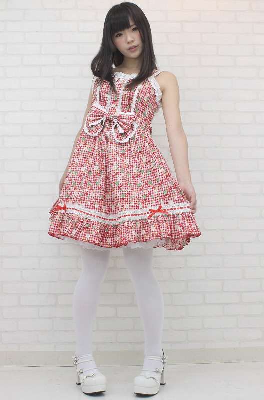 真っ赤なチェリー&ベリーでキュートに仕上げた、ギンガムチェックのジャンパースカート(M)。たっぷりのフリルとリボンが超ラブリーなコスチューム!フロントの大きなリボンはピンで取り外しが出来るので、お好きなアレンジが楽しめます。背面は編み上げになっており、リボンは結ぶ仕様となっています。※水洗い不可、塩素系漂白剤による漂白不可、アイロンは中温で当て布使用、ドライクリーニング可、色落ちの可能性があります。※こちらの商品は在庫の状況によりお届けまでに4日〜7日程度かかる場合がございます。