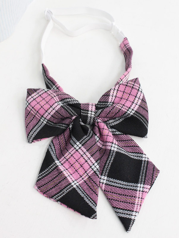 仕様:フリーサイズ セット内容:スクールリボン単品(白い留め具、ゴム紐で長さ調整可)
