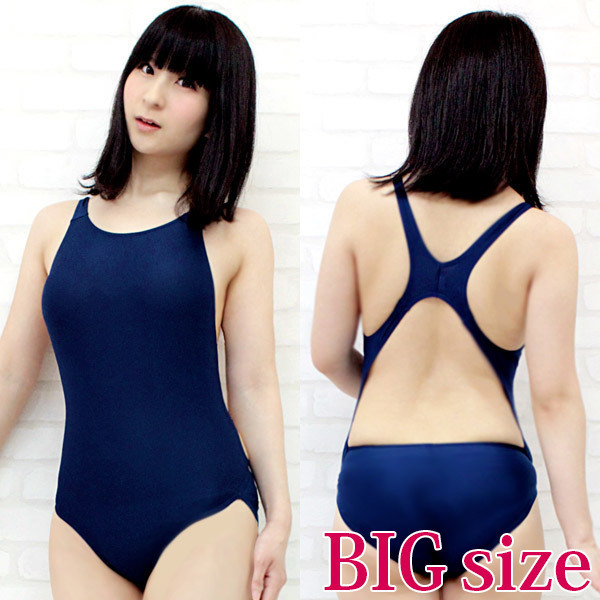 定番のネイビーカラーと正面から見た姿でシンプルな仕上がり!かと思いきや、大胆に露出したバックスタイルが、セクシーさ満点の競泳水着コスチューム!クビレも丸見えなので、美しいボディラインを強調できます。みんなの注目を浴びること間違いなし!こちらは大きめのBIGサイズです。※液温40度限度で選択可、塩素系漂白剤による漂白不可、アイロンは中温で当て布使用、ドライクリーニング可、色落ちの可能性があります。※こちらの商品は在庫の状況によりお届けまでに4日〜7日程度かかる場合がございます。