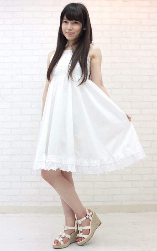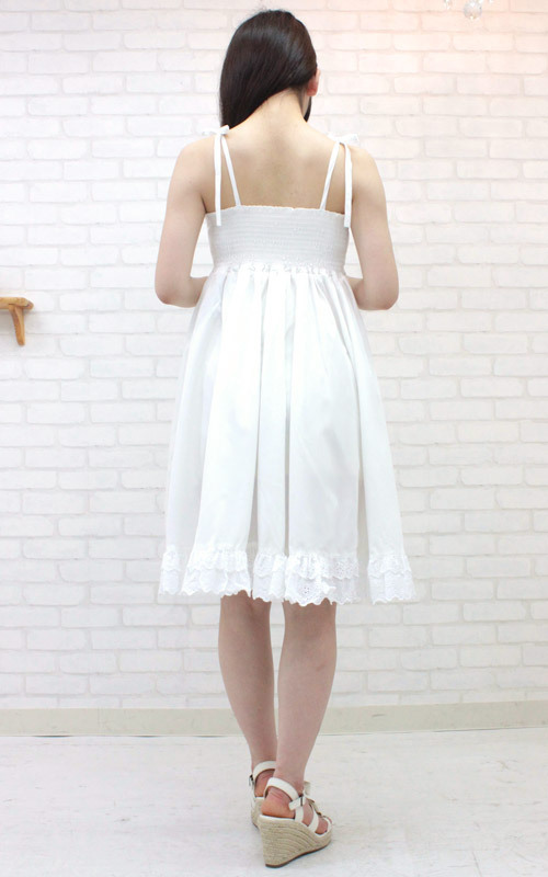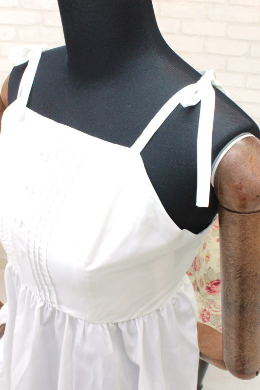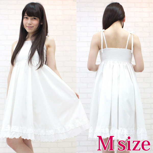 肩の上で可愛くリボン結び!真夏の太陽がとっても似合う、白ワンピース(M)。ピンタックやレース、背面のシャーリングなどで、お嬢様風にデコレートしたワンピースです。リゾートや避暑地などのサマードレスとしても活躍するコスチュームです。※水洗い不可、塩素系漂白剤による漂白不可、アイロンは中温で当て布使用、ドライクリーニング可。※こちらの商品は在庫の状況によりお届けまでに4日〜7日程度かかる場合がございます。