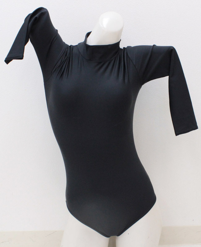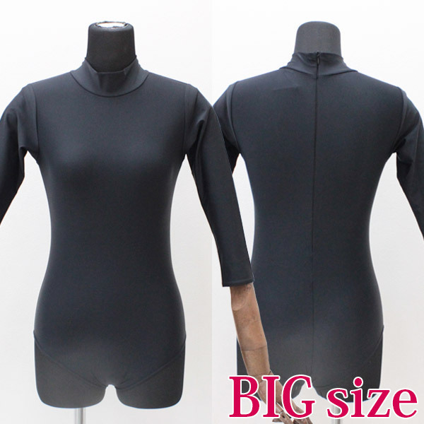 ブラックカラーのスタンダードな七部袖丈ハイネックレオタード単品(BIG)。伸縮性のある柔らかな素材を使用!身体にそっと寄り添うように優しくフィットし、ボディラインを美しくセクシーに魅せてくれるコスチュームです。※水洗い可、塩素系漂白剤による漂白不可、ドライクリーニング可、色落ちの可能性があります、ご注意ください。※こちらの商品は在庫の状況によりお届けまでに4日〜7日程度かかる場合がございます。