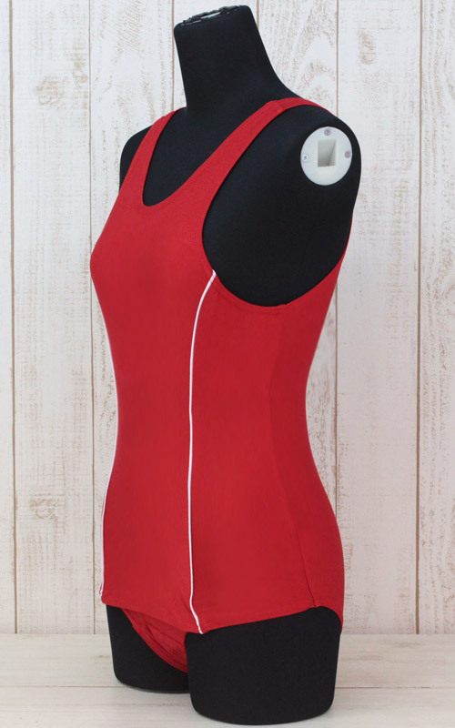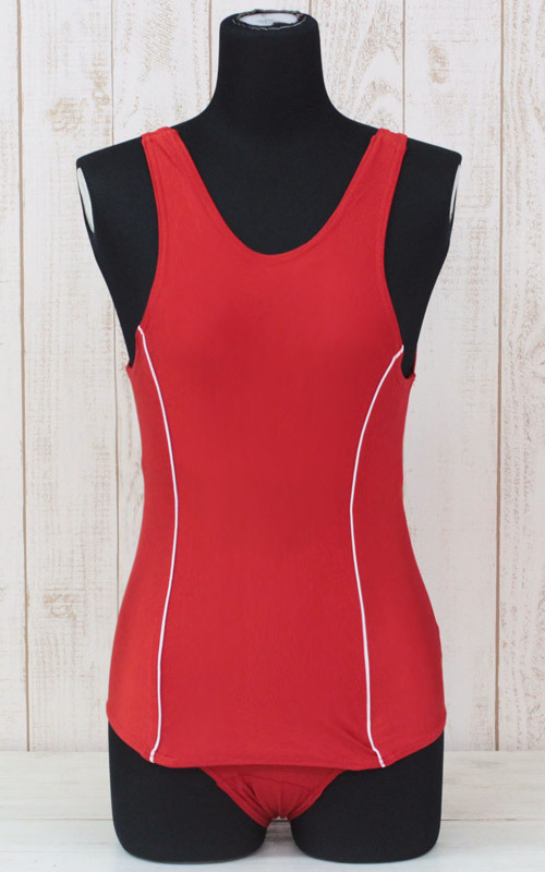 定番のフォルムはサイドラインでちょっぴりオシャレに!クロッチ部分にしっかり水抜きのついた、旧スクと呼ばれる旧タイプのスクール水着。シンプルなデザインに鮮やかな赤がマッチング!伸縮性があるので着やすさも着心地もバツグンな水着コスチュームです。※水洗い可、塩素系漂白剤による漂白不可、アイロンは中温で当て布使用、ドライクリーニング可、色落ちの可能性があります、ご注意ください。※こちらの商品は在庫の状況によりお届けまでに4日〜7日程度かかる場合がございます。