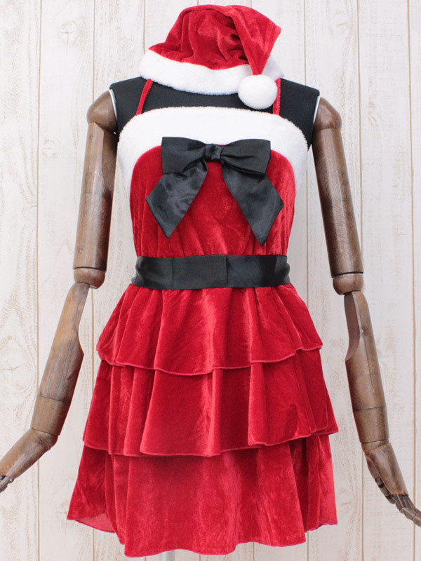 女の子らしさを最大限に発揮!三段フリルがドレッシーなサンタワンピ&帽子のセット。胸元リボンが可愛いキャミワンピの腰に、さらにリボンを巻いてウエストマーク!ふんわり広がるティアードワンピースのキュートなサンタ衣装です。※水洗い不可、塩素系漂白剤による漂白不可、アイロンは中温で当て布使用、ドライクリーニング可。※こちらの商品は在庫の状況によりお届けまでに4日〜7日程度かかる場合がございます。