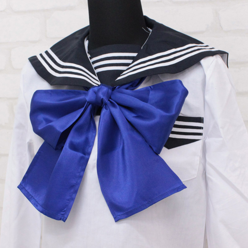 セーラー服や学生服コスプレをもっと可愛く着こなしたいあなたに!ブルーサテンで仕上げたスクールスカーフ(単品)です。スカーフを装着することで一気に華やかに!様々なコーデで大活躍するオシャレアイテムです。※水洗い不可、塩素系漂白剤による漂白不可、アイロンは中温で当て布使用、ドライクリーニング可、色落ちの可能性があります、ご注意ください。※こちらの商品は在庫の状況によりお届けまでに4日〜7日程度かかる場合がございます。