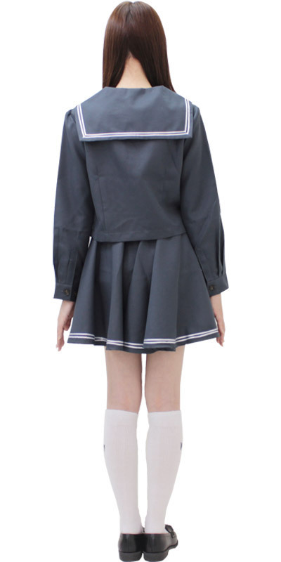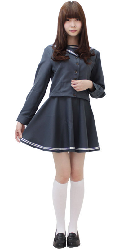 チャコールグレーに白のダブルラインが珍しい!有名学校の制服コスチューム。●BIGサイズだからぽっちゃりさんや女装男子も着用可能●長袖セーラートップスはフロントボタン開き●フレアスカートがプリーツでは出せない素敵なシルエットを作ります。スカーフやネクタイなしで着るシンプルデザインが逆にカッコよく感じるセーラー服です。※水洗い不可、塩素系漂白剤による漂白不可、アイロンは中温で当て布使用、ドライクリーニング可、色落ちの可能性がありますのでご注意ください。※こちらの商品は在庫の状況によりお届けまでに4日〜7日程度かかる場合がございます。