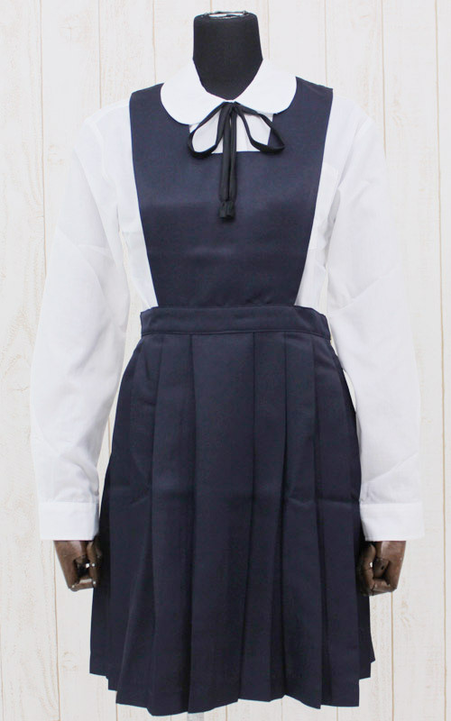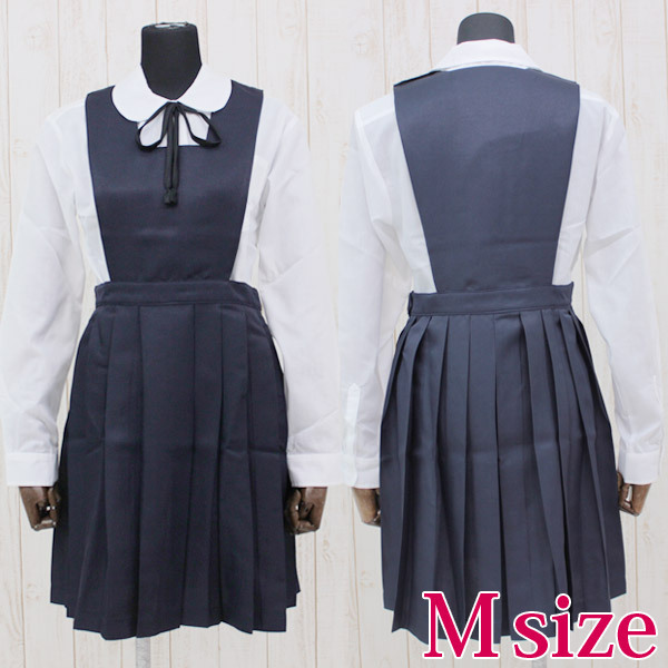 仕様:Mサイズ:B〜96cm・W〜76cm ブラウス:着丈64cm・袖丈59cm・肩幅43cm・首周り40cm・手首周り22cm ジャンパースカート丈92cm 紐タイ130cm セット内容:ブラウス(丸襟、前ボタン留め)、ジャンパースカート(上半身裏地付き、左肩とウエストにスナップボタン有り、ホック着脱可)、紐タイ