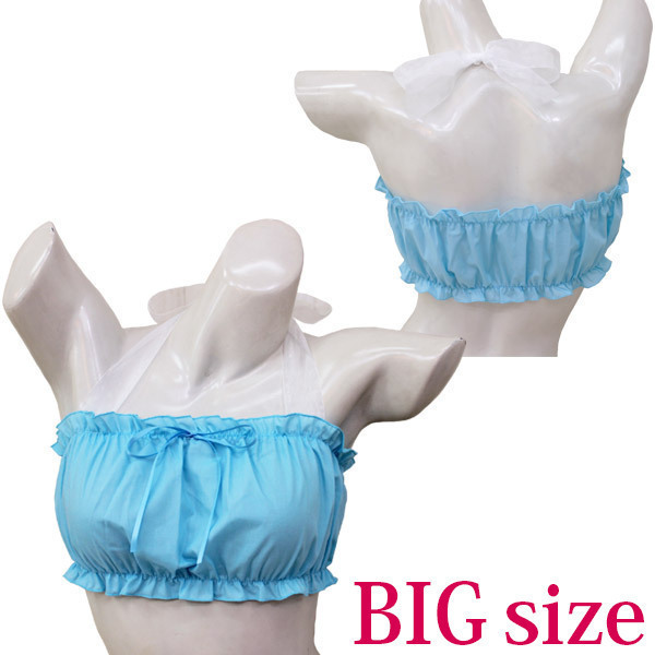見せブラOK!たっぷりギャザーが超可愛い、水色のチューブブラジャー単品。●女装子さんも着用できるBIGサイズ●ずり落ち防止・白いシフォンリボンを結んでホルターブラにチェンジ●縫いこんだストレッチゴムのおかげでボディにフィット●胸元にキュートな細いリボン飾りをあしらいました。ファッションアレンジが楽しい乙女チックなランジェリーです。※水洗い不可、塩素系漂白剤による漂白不可、アイロンは中温で当て布使用、ドライクリーニング可。※こちらの商品は在庫の状況によりお届けまでに4日〜7日程度かかる場合がございます。