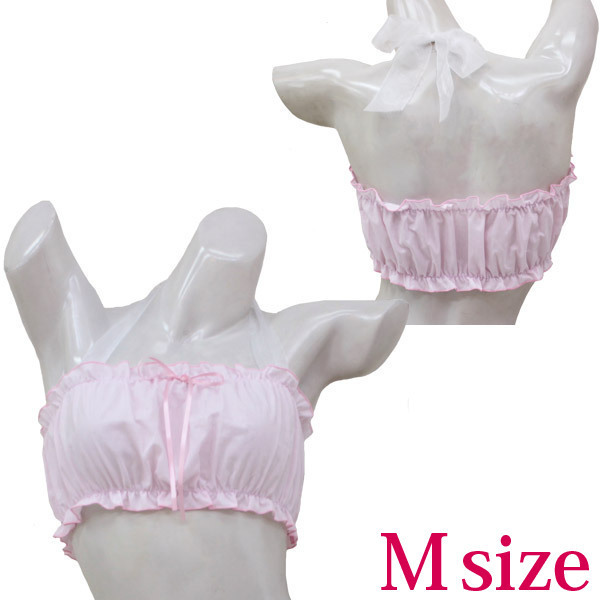 ロマンチックな気分になれそう♪乙女度高めなチューブブラ。●ふんわりパステルピンク×ホワイト●バストをすっぽり覆うチューブ型●上下にたっぷりフリルギャザー入り●フロント真ん中に繊細リボンをON●ホルターネックはオーガンジーリボンで可愛らしく。ピンクとホワイトのスウィートカラーで女の子らしさ急上昇!まるでプリンセスのナイティのようなヒラヒラ感で、お揃いショーツ(cm1002)とあわせればコスチュームの見せインナーとしても活躍してくれそうです。※水洗い不可、塩素系漂白剤による漂白不可、アイロンは中温で当て布使用、ドライクリーニング可。※こちらの商品は在庫の状況によりお届けまでに4日〜7日程度かかる場合がございます。