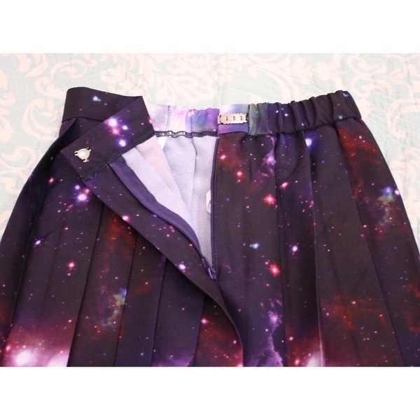 ロマンティックで幻想的な宇宙柄♪フォトプリントデザインのセーラー服コスプレ。●インパクト抜群の宇宙柄●オシャレで神秘的な紫カラー●セーラートップス&スカート●お揃い柄のリボンもセット。数多の星や銀河が美しい宇宙柄がプリントされたセーラー服コスチューム!黒や白のニーハイからハイソックスまで何でも合わせられます。※水洗い不可、塩素系漂白剤による漂白不可、アイロンは中温で当て布使用、ドライクリーニング可、色落ちの可能性があります、ご注意ください※本製品は、生地の裁断工程により柄の位置(模様)に個体差が生じます。