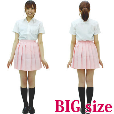優しいパステルピンクがキュート♪女子校生の定番、制服コスプレには欠かせない無地プリーツスカート(BIGサイズ)。白シャツで清楚に、ポロシャツとあわせてカジュアルに!ブレザーやカーディガンとあわせてもGOOD♪様々なイベント用のコスチュームとしてはもちろん、普段使い用にも使える制服スカートです。※水洗い不可、塩素系漂白剤による漂白不可、アイロンは中温で当て布使用、ドライクリーニング可、色落ちの可能性がありますのでご注意ください。