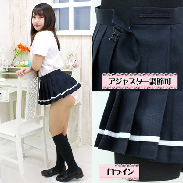 大人気の超ミニスカートシリーズにライン入りモデルの「超ミニ無地プリーツスカート単品 紺×白ライン M」が登場。女子校生の制服コスプレには欠かせない定番のプリーツスカートですが、この超マイクロミニ丈はなかなか無い逸品。見せパンと併せれば可愛さも倍増!白シャツで清楚に、ポロシャツとあわせてカジュアルに!ブレザーやカーディガンとあわせてもGOOD♪様々なイベント用のコスチュームに使える制服スカートです。※水洗い不可、塩素系漂白剤による漂白不可、アイロンは中温で当て布使用、ドライクリーニング可、色落ちの可能性があります。※こちらの商品は在庫の状況によりお届けまでに4日〜7日程度かかる場合がございます。