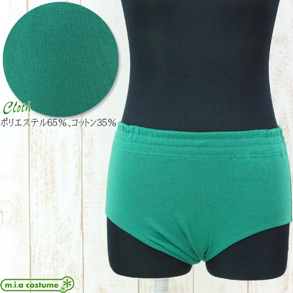ウエストゴムが優しくフィットする緑色のブルマ単品大きめサイズ。男性でも穿きやすい可愛いブルマ!お気に入りの体操着コスプレと組み合わせて穿いてみて◎※手洗い可、塩素系漂白剤による漂白不可、アイロンは中温で当て布使用、ドライクリーニング可、色落ちの可能性があります。※こちらの商品は在庫の状況によりお届けまでに4日〜7日程度かかる場合がございます。
