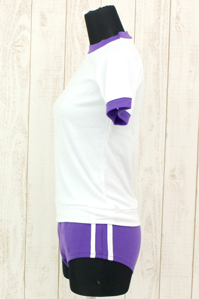 深めの紫ブルマに2本の白ラインを施した白トップスとの上下セット。シンプルな体操着にパープルカラーを取り入れた可愛い体操服コスプレ♪このほかにも様々なカラーバリエーションをそろえておりますので、そちらも是非あわせてご覧くださいませ。※手洗い可、塩素系漂白剤による漂白不可、アイロンは中温で当て布使用、ドライクリーニング可、色落ちの可能性があります。※こちらの商品は在庫の状況によりお届けまでに4日〜7日程度かかる場合がございます。