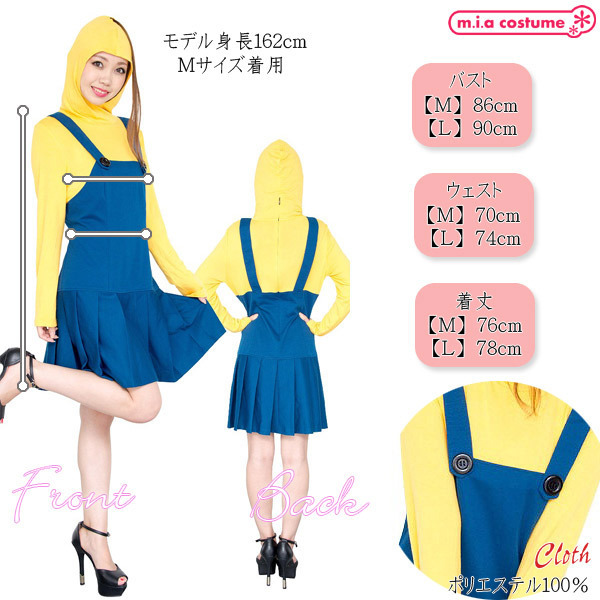 世界中で大人気の某キャラクターを彷彿とさせる可愛い長袖仕様のデニム風一体型ワンピース。フードから髪を出せるユニークなデザインが特徴的!パーティやコスプレイベントほか、テーマパークやハロウィンイベントでお友達と仮装して楽しんでも♪Mサイズ※塩素系漂白剤での漂白は不可、色落ちの可能性があるため、付属品を外し、各単体での手洗い洗濯をお願いいたします。※塩素系漂白剤による漂白不可、洗濯の際はリボンなどの付属品を外し個々単独での手洗いをお願いします、色落ちの可能性があります。※こちらの商品は在庫の状況によりお届けまでに4日〜7日程度かかる場合がございます。