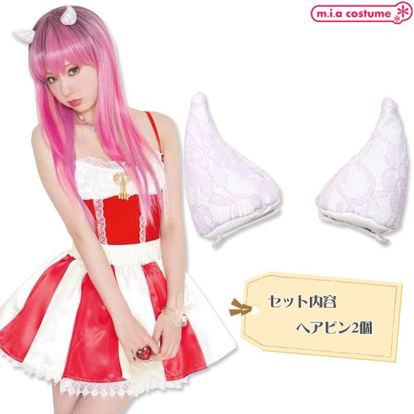 スウィートでファンタジックな世界観が素敵!原宿系カリスマモデル「AMO」のプロデュースブランド「Lunatic Lemony Lollipop」からレーシィデビルホーン(ヘヴンホワイト)が登場♪エナメルの上にはラベンダーカラーのレースが重ねられていて、甘めなデビルホーンのヘアピンがとても良い感じです。繊細で主張しすぎないミニサイズなのもポイント。