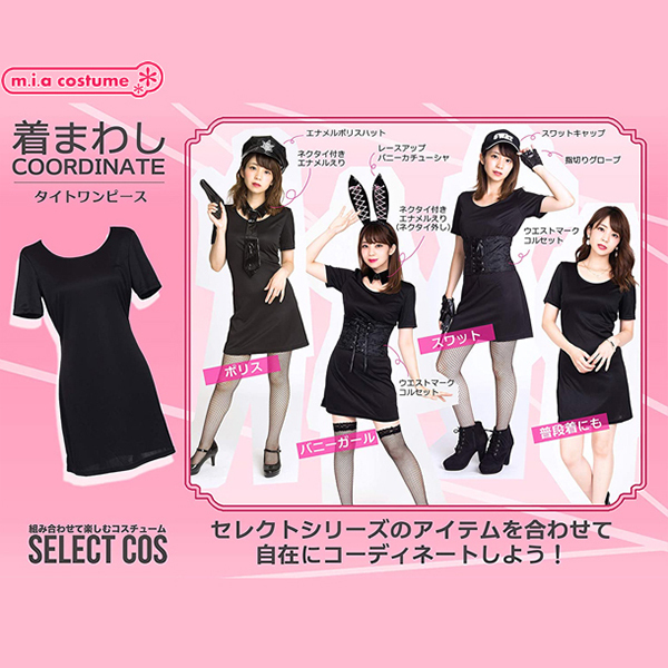 着回し上手なコスプレ衣装といえばこちら♪セレクトしてオリジナルのコーディネートが楽しめちゃうコスプレシリーズ!タイトワンピースはクールなテイストにぴったり。ポリスハット、付け襟を合わせれば、セクシーポリスに変身♪シンプルなデザインなので、組み合わせ次第でいろいろと使えます!他にもセレクトシリーズの小物を合わせて色々なコスプレを楽しんでね。※洗濯機不可、弱い手洗い可、塩素系漂白剤による漂白不可、アイロンは中温で当て布使用、ドライクリーニング不可