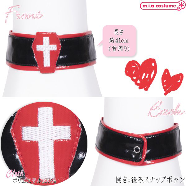 視線を集めて目立つこと間違いなし!セレクトしてオリジナルのコーディネートが楽しめちゃうコスプレシリーズからナースチョーカー(ブラック)の登場♪エナメルの光沢がセクシーでオシャレなチョーカーです。十字架マークが、ナースコスプレにぴったり♪ワンピースや小物を合わせて色々なコーディネートを楽しんでね!