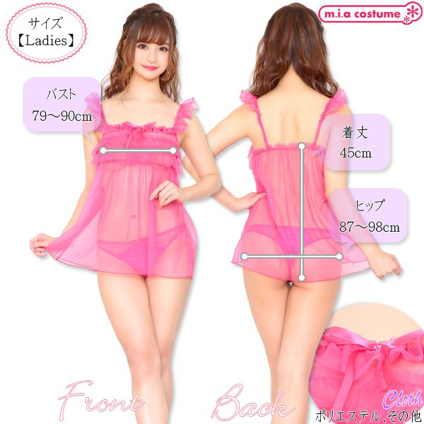 仕様:Mサイズ B79〜90cm・H87〜98cm・着丈45cm セット内容:ベビードール、ショーツ 素材:ポリエステル、その他