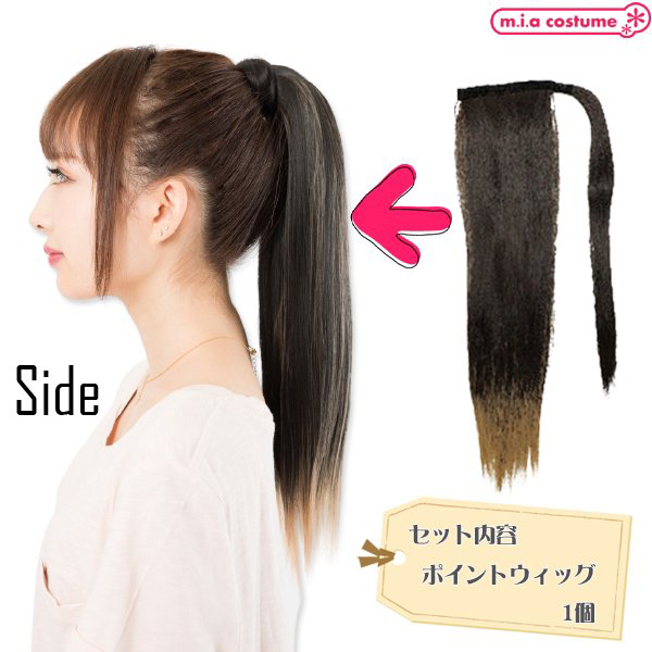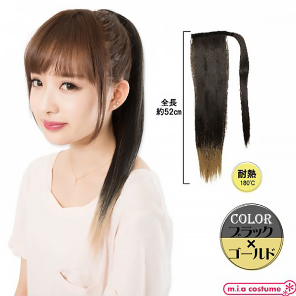 イメージチェンジしたいときやコスプレに♪手軽に使える着脱式の耐熱ポイントウィッグです。二つ使えばツインテールにもアレンジ可能♪地毛に馴染みやすいサラサラの毛質で、ブラック×ゴールドのカラーリングだからライブなどのイベントにもおススメです。※商品は一つ入りです