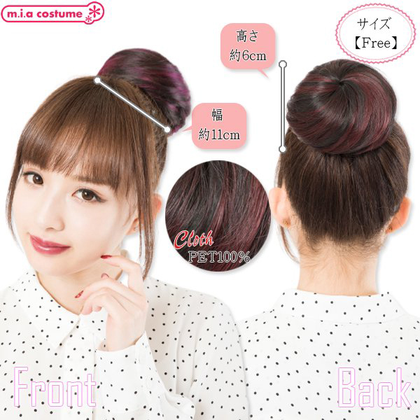 グラデーションもの入ったウィッグをお探しならこちら!着脱式のおだんごウィッグで簡単イメチェン♪サイズ調節用のアジャスター付きで簡単にお使いいただけるウィッグです。二つ使えばキュートなクマさんヘアーにも!ポイントカラーが可愛いブラック×ワインレッドです。※商品は一つ入りです