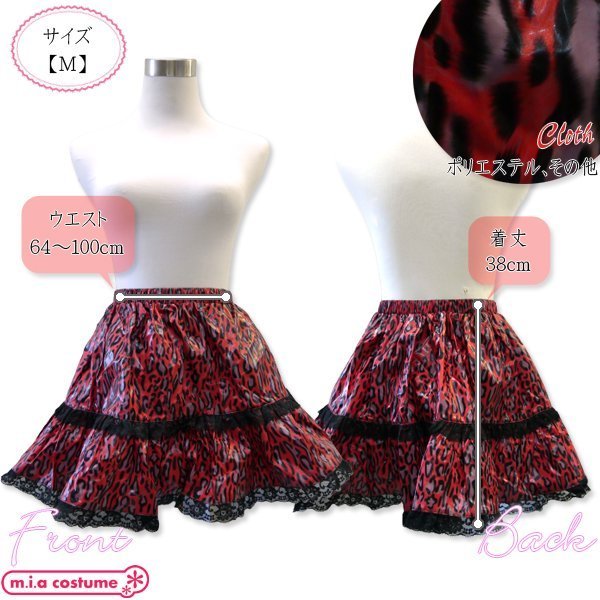 コーディネートの幅が広がる♪今流行の薄地コーティングのオーバースカートです。豹柄が特徴的でゴスロリ、パンクファッションとしても◎パニエや他のスカートの上にアクセントとしてダブル穿きをするも良し♪撮影会や仮装イベント、文化祭などの余興や催事にもどうぞ!誕生日やハロウィンパーティーなどにもおすすめです。※石油系溶剤によるドライクリーニング可、塩素系及び酸素系漂白剤の使用禁止、アイロンは160℃を限度とし中温140〜160℃でかけます、日陰のつり干しがよい、洗濯の際は付属品を取り外してください、色落ちする場合があるので他のものと分けて洗濯下さい、全ての漂白剤の使用は避けて下さい、タンブラー乾燥は避けて下さい。※こちらの商品は在庫の状況によりお届けまでに4日〜7日程度かかる場合がございます。