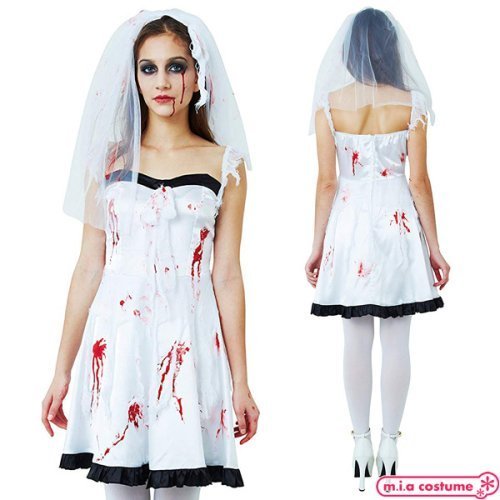 血まみれで恐怖の結婚式!血だらけの花嫁コスプレです♪ゾンビ・ホラー系の仮装コスチュームとして、ハロウィンパレードやお化け屋敷、仮装イベントにどうぞ!ウェディングドレス風の衣装で血糊はお好みでアレンジ♪ハロウィンのコスプレにもぴったりです。※商品写真は参考例として血糊でアレンジ後の画像となりますので、ご注意ください。※水洗い不可、塩素系漂白剤による漂白不可、アイロンは低温で当て布使用、ドライクリーニング不可、色落ちの可能性があります。※商品写真は参考例として血糊でアレンジ後の画像となりますので、ご注意ください。※こちらの商品は在庫の状況によりお届けまでに4日〜7日程度かかる場合がございます。