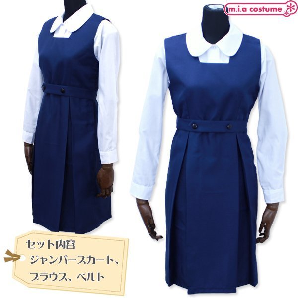 超名門女子校の制服がついに完成しました♪シンプルながらも洗練されたデザインでお嬢様度が高いスクール制服コスチュームです。セット内容はブラウス(前ボタン)、ジャンバースカート(裏地有り・脇と肩スナップボタン留め)、ベルトと充実♪ウエストのベルトが特徴的で学園祭や催し物などにもおすすめのコスプレ衣装です。※水洗い可、塩素系漂白剤による漂白不可、アイロンは中温で当て布使用、ドライクリーニング可、色落ちの可能性があります。※こちらの商品は在庫の状況によりお届けまでに4日〜7日程度かかる場合がございます。