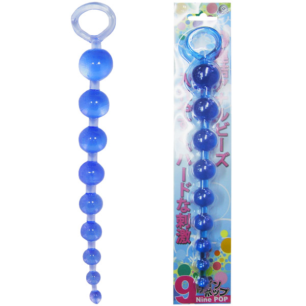 連続刺激がたまらない!だんだん大きくなるボールの9連アナルビーズ(ブルー)。先端の径が10mmと小さく挿入しやすい本体は、最大径29mmの球まで9つ連なる実力派。各ボールの間隔が空いているので、ピストンさせたときにアナルに引っかかりやすく超気持ちイイ!硬めの弾力性&直腸の奥まで届く適度な長さで、初心者にも扱いやすいアナルグッズです。