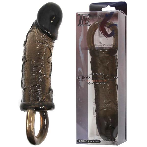 サイズアップ&締めつけで持続効果抜群!大人気「ボス」シリーズの玉掛けリング付きペニスサック(L)。漢を上げるスモークブラックカラーの本体は、べたつきやニオイのない、伸縮性に優れた高純度エラストマー素材を使用!浮き出た血管やカリに至るまで、リアルな造型に仕上げられています。亀頭部分は素材が詰まっていますので、その分だけ長さもアップ!ペニスサックを広げて根元まで被せ、ズレ防止に役立つ玉掛けリングを引っ掛けるだけで準備完了!サイズアップに加え、持続性と快感の向上を狙った機能的なペニスサックです。